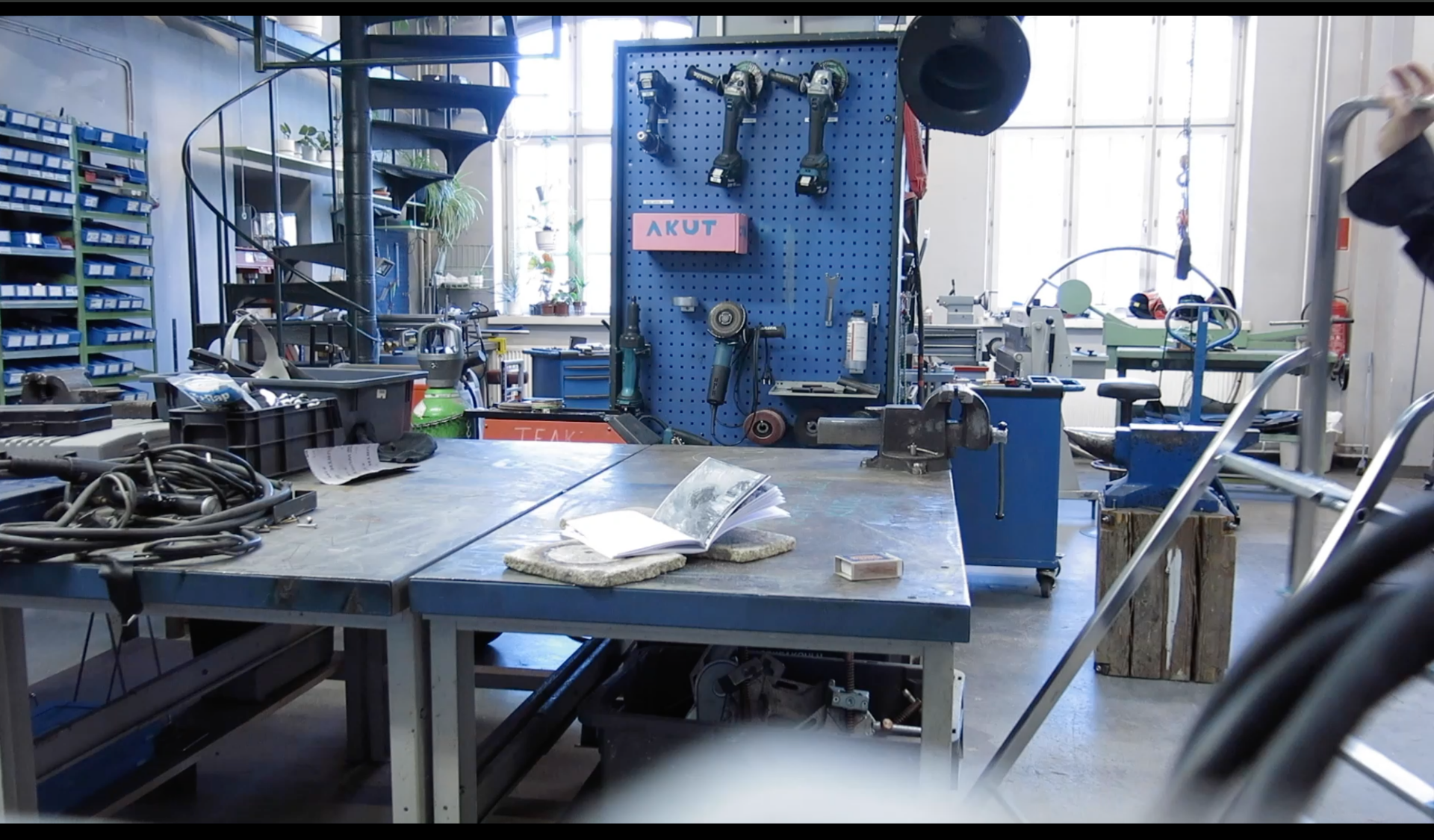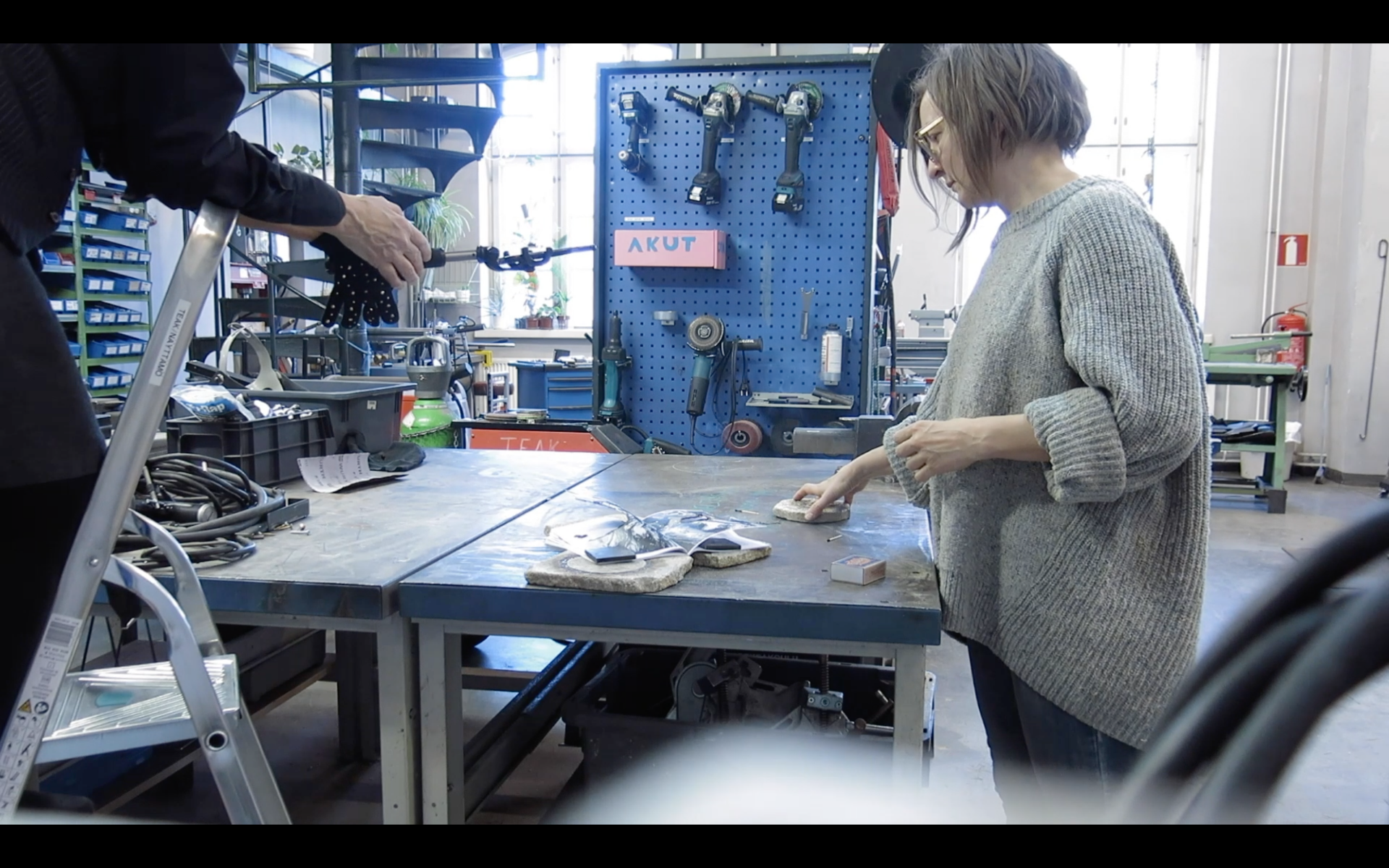 Nanni Vapaavuori and Lynda Gaudreau met few times in the Metal Shop of Uniarts Helsinki and at the fireplace at Teurastamo in Helsinki, looking at Lynda' s Almost Manual - that was in progress, as an asynchronical device for making, writing and reading. April 16, 2021, Helsinki, Finland